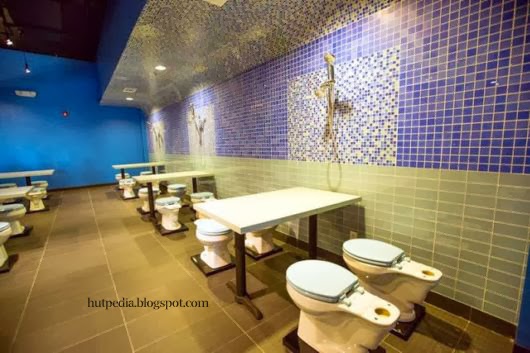 The Magic Restroom Cafe is an eating establishment that allows patrons to sit on toilets to eat a variety of Taiwanese-style dishes named after poopy things. It has also a lot of the food names like ‘Black Poop’-Chocolate Sundae, 'Constipation' and 'Bloody' number two Vanilla-Strawberry Sundae is served in little ceramic toilet bowls. The restaurant is called Magic Restroom Cafe and basically the deal is you sit on toilets and eat goopy brown curry out of miniature commodes.